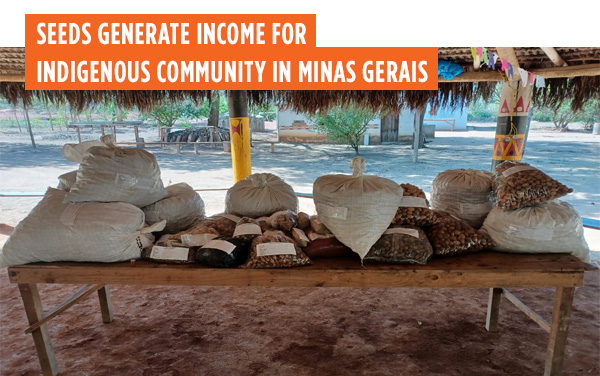 In June, Renova Foundation made the first purchase of seeds collected by indigenous people from the Pataxó Geru Tucunã village, located in Açucena (MG). A total of 242 kg of seeds were acquired from 13 native forest species, including cajazinho (Spondias mombim), boleira (Joannesia princeps), angico-vermelho (Anandenanthera macrocarpa) and garapa (Apuleia leiocarpa). Each species has a specific sales value. The purchase generated an income of more than R$ 20 thousand for the group, which is made up of six collectors.